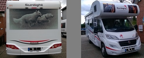 und hier das Ergebnis in Top-Qualität und Verarbeitung an unserem Wohnmobil (nur die Hunde-Fotos)